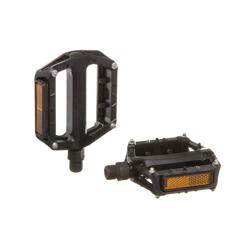 Педали FP-870ZP Feimin, дорожные, пластиковые с металлическими шипами, с промышленными подшипниками, со светоотражателями, ось диам. 9/16" из борированной стали, размер 104 х 93 мм, вес пары 279 г, чёрныеХарактеристики